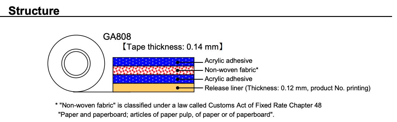 – Băng keo Nitto GA808 là băng keo hai mặt được phát triển để dán các linh kiện của thiết bị gia dụng và các sản phẩm điện tử khác.